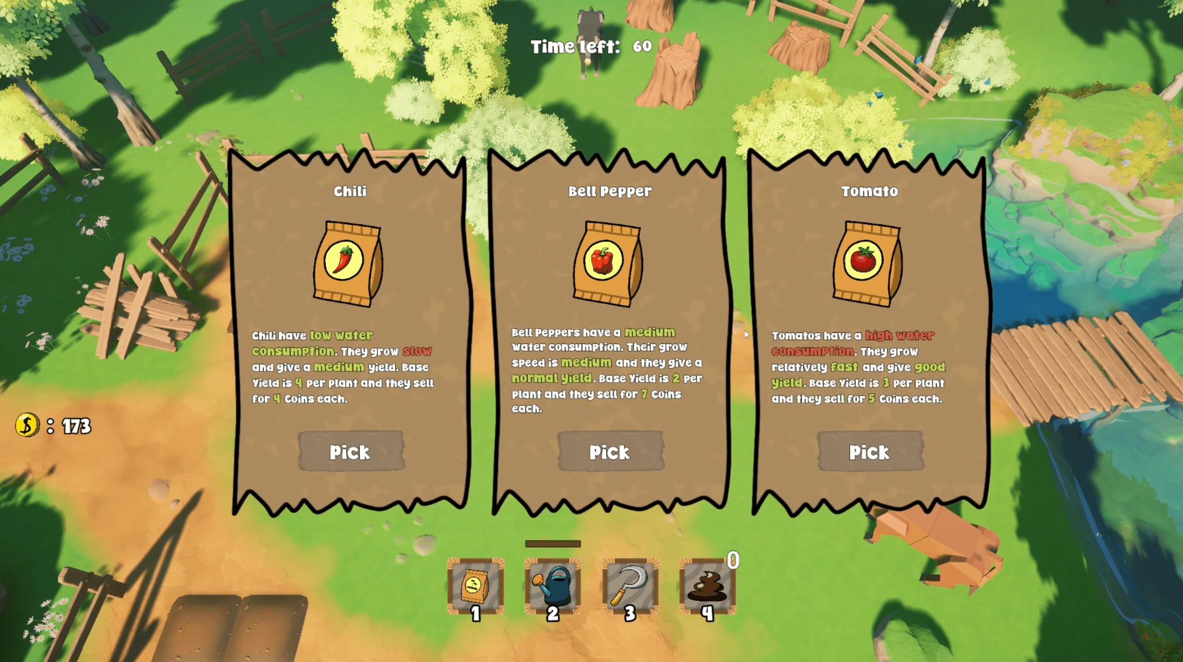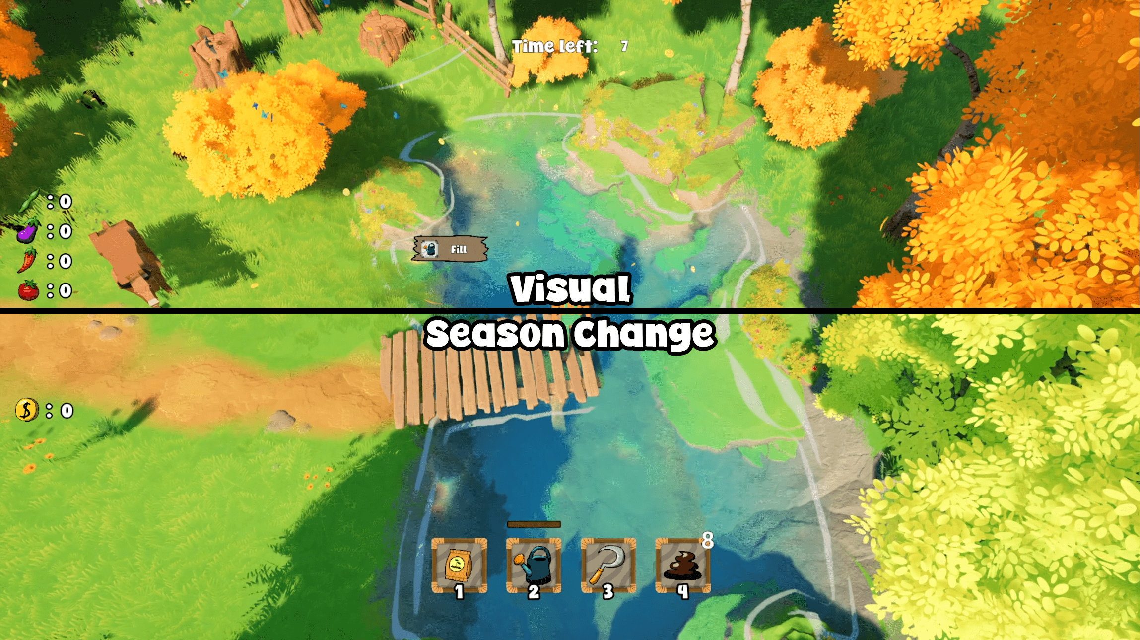 At the start of each year, you choose a new plant seed, which will be added to your growing repertoire. Then the farming season begins: plant your crops, fill your watering can at the pond, water your plants, and gather poop from your cows to use as fertilizer.